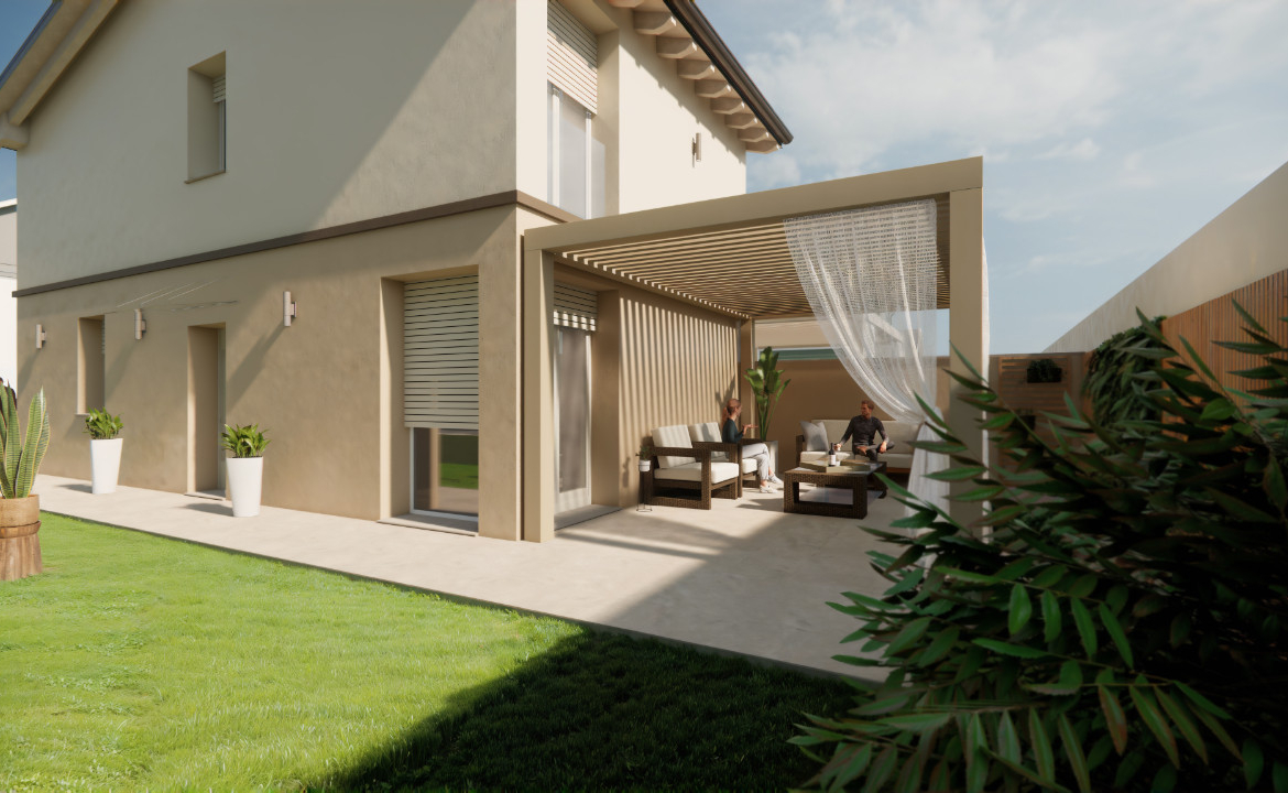 RIVERGARO – Centro – In zona tranquilla e ottimamente servita a due passi dalle scuole, VILLE NUOVE in classe A4 full electric composte da soggiorno, cucina, tre camere da letto, due bagni oltre a locale tecnico. Completa la proprietà giardino con predisposizione per irrigazione automatica e pergola bioclimatica di 20 mq. Due posti auto coperti. Ville full optional con clima, riscaldamento a pavimento, portone, box e cancello pedonale elettrificati, pannelli solari, zanzariere oltre a finiture di alta qualità e pregio. Possibilità di personalizzare le finiture in ampio capitolato di alta qualità