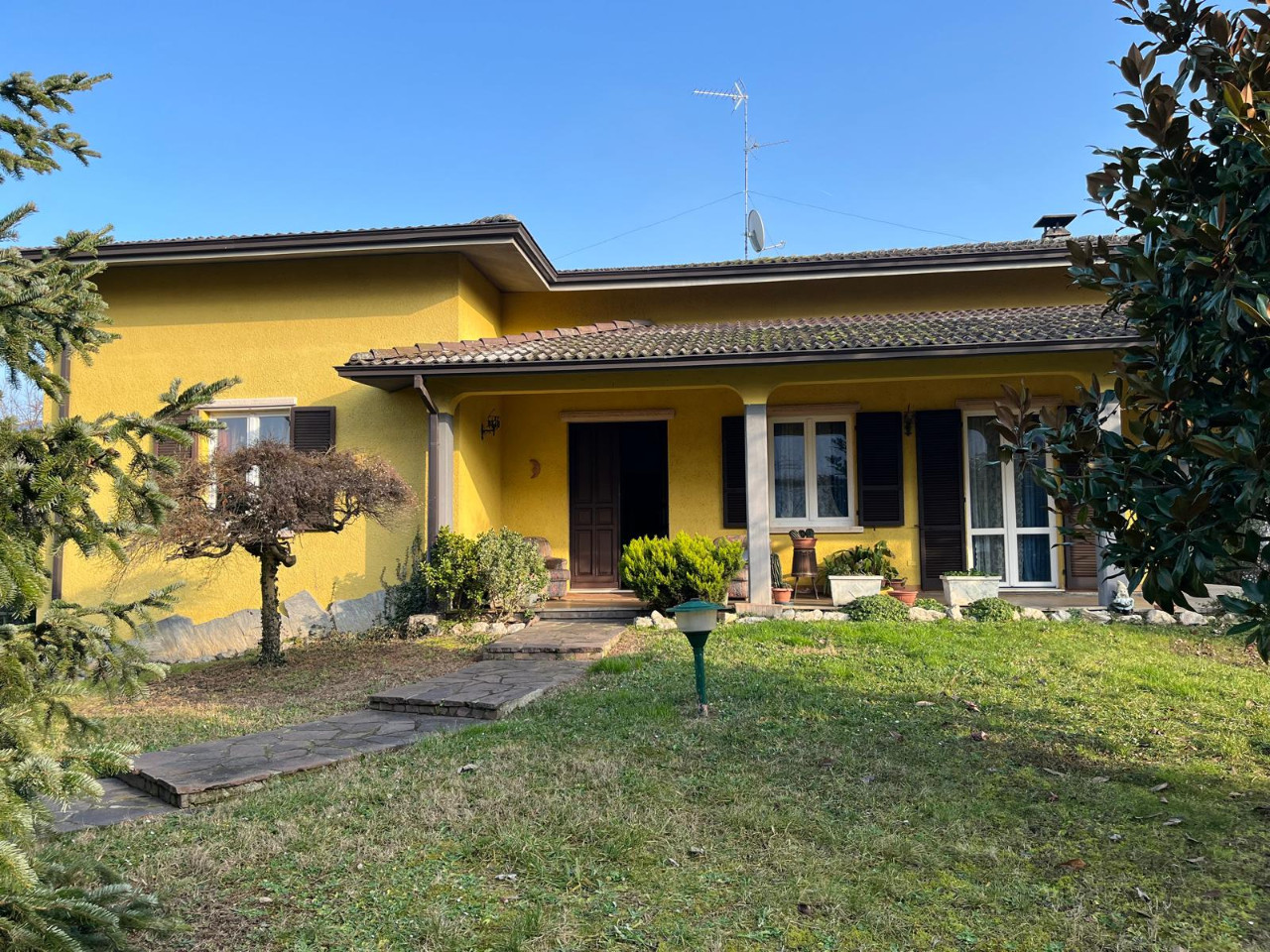 GOSSOLENGO – In ottima posizione, VILLA INDIPENDENTE MONOPIANO, composta da ampio soggiorno con camino, cucina, tre camere da letto con balcone, bagno; al piano sottostante ampia taverna, lavanderia, locale caldaia e box di 75 mq; oltre a piano sottotetto al rustico nel quale ricavare altri locali, balcone e porticato circostante. Il giardino e il frutteto circondano la villa. Possibilità di realizzare la piscina.